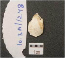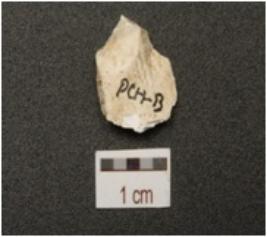 | Description / विवरण | End struck chert flake, prominent bulb on ventral surface. |