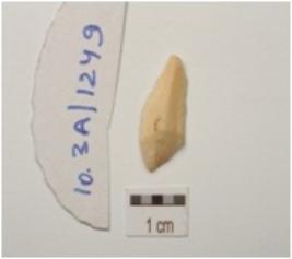 | Description / विवरण | A chert blade, prominent bulb on ventral surface, triangular cross-section and prominent ridge on dorsal surface. |