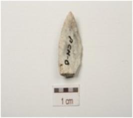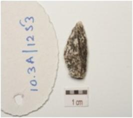 | Description / विवरण | A chert blade, negative bulb on ventral surface, prepared platform and use wear marks on cutting edge. |