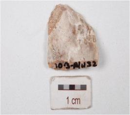 | Description / विवरण | A flake made on chert, flake scars on surface and irregular edges. |