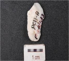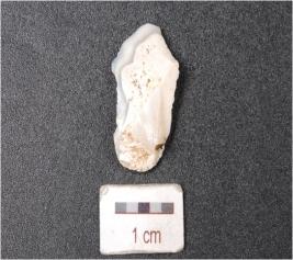 | Description / विवरण | A flake made on agate, uneven surface and irregular edges. |
