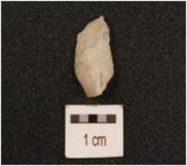 | Description / विवरण | A quartz flake, a ridge on dorsal triangular in section and use wear marks along cutting edges. |