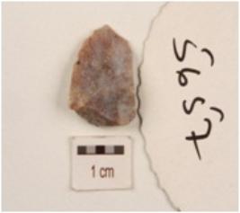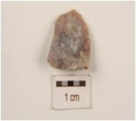 | Description / विवरण | A chert flake, prominent bulb on ventral flake scars on dorsal and use wear marks along cutting edges. |