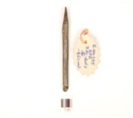 | Description / विवरण | Fragment of a point made on bone, point damage and circular cross section. |