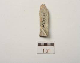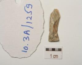 | Description / विवरण | A blade on chert, mid ridge on dorsal side, prepared platform, bulb on ventral side and use wear marks on working edge. |