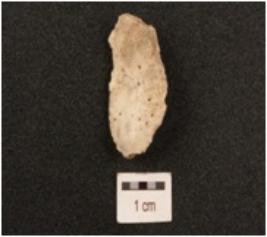 | Description / विवरण | A chert flake, prominent bulb on ventral use wear marks along cutting edges and a ridge with flake scars on dorsal. |