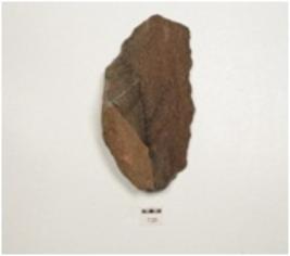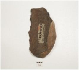 | Description / विवरण | A scraper, made on quartzite stone, prepared platform, flake scars on dorsal side and use wear marks along the working edge. |