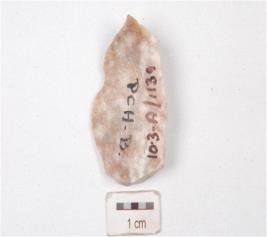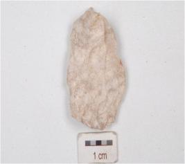 | Description / विवरण | A blade made on chert stone, ridges on dorsal side, diffused bulb on ventral side and irregular edges. |