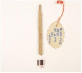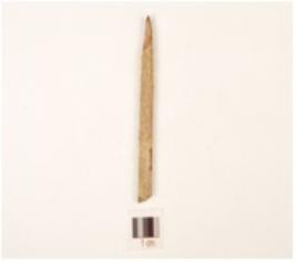 | Description / विवरण | Fragment of a made on bone point, pointed, rough surface, heat treatment resulting in black surface, circular cross section. |