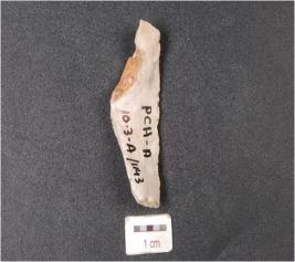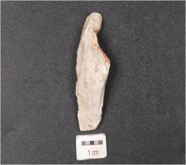 | Description / विवरण | A blade made on chert stone, mid ridge on dorsal side, diffused bulb on ventral side and irregular edges. |