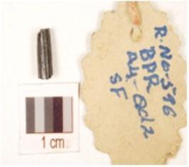 | Description / विवरण | Fragment of a point made on bone, point damage and circular cross section. |