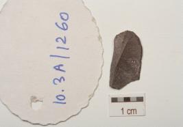 | Description / विवरण | End struck chert flake, positive bulb on ventral surface and chipping dorsal surface. |