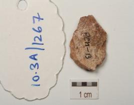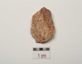 | Description / विवरण | End struck chert flake, prominent bulb on ventral surface and chipping dorsal surface. |