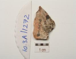 | Description / विवरण | A flake on chert, prepared platform, flake scars on dorsal side and use wear marks on cutting edge. |