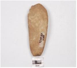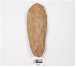 | Description / विवरण | A khandolite celt having bi-convex cross section. |