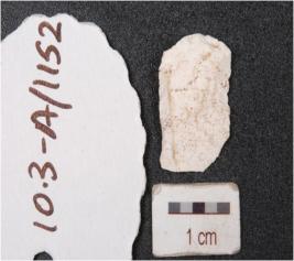 | Description / विवरण | A blade made on chert stone, flake scars on dorsal side, diffused bulb on ventral side and irregular edges. |