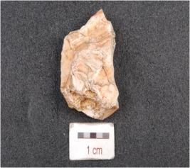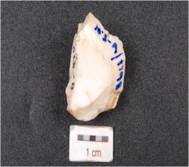 | Description / विवरण | A flake on chalcedony, bulb and platform absent and cortex on one side. |