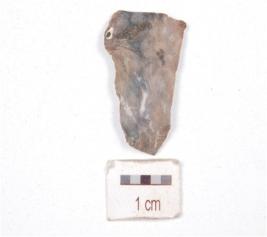 | Description / विवरण | An elongated utilized flake made on end struck chert, prepared platform, diffused bulb on ventral side and use-wear marks along sharp edges. |