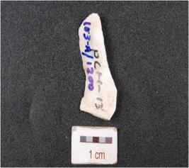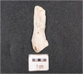 | Description / विवरण | Fragment of an elongated chert flake, bulb and platform absent, ridge on dorsal side and use-wear marks along cutting edges. |