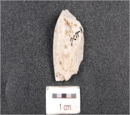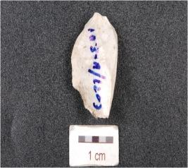 | Description / विवरण | A blade core made on chert, with five blade scars. |