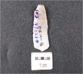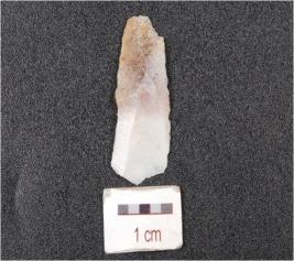 | Description / विवरण | A parallel sided blade made on chalcedony, prepared platform, diffused bulb on ventral side, blade scars on dorsal side and use-wear marks along sharp edges. |