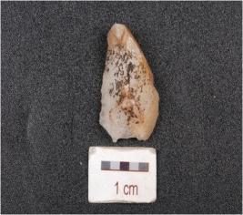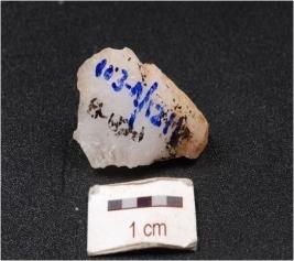 | Description / विवरण | A quartz flake, bulb and platform absent and cortex on one side. |
