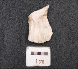 | Description / विवरण | Fragment of a flake, bulb and platform absent and three blade scars on one side. |