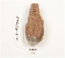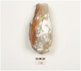 | Description / विवरण | A chalcedony core flake scars on surface and visible cortex on surface. |