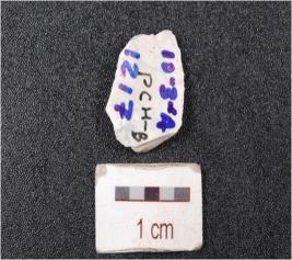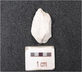 | Description / विवरण | An end struck chert flake, prepared platform, diffused bulb on ventral side and flake scars on dorsal side. |