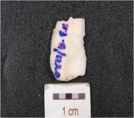 | Description / विवरण | A utilized flake on chert, bulb and platform absent and use-wear marks along sharp edges. |