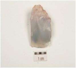 | Description / विवरण | A chalcedony flake, scars on surface and visible cortex on ventral side. |