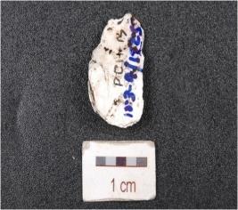 | Description / विवरण | A side struck chert flake, prepared platfrom and diffused bulb on ventral side. |