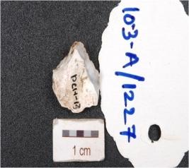 | Description / विवरण | A chalcedony flake bulb and platform absent. |