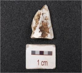 | Description / विवरण | A chalcedony flake, bulb and platform absent. |