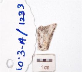 | Description / विवरण | An end struck chert flake, prepared platform and diffused bulb on ventral side. |