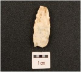 | Description / विवरण | A chert blade diffused bulb on ventral two ridges with flake scars on dorsal and use wear marks on edges. |