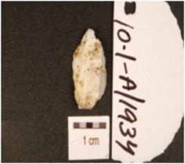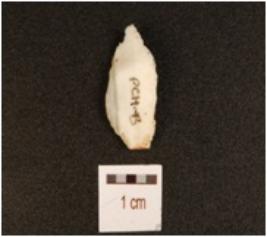 | Description / विवरण | Chert flake with flake scars on dorsal. |