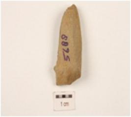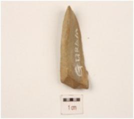 | Description / विवरण | A scraper made of chert flake, flake scars on dorsal side and partly retouch cutting edge. |