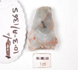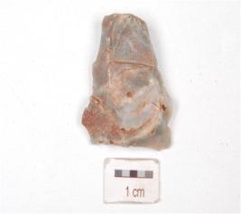 | Description / विवरण | Chert flake, made on end struck flake, prepared, platform, prominent bulb and cortex partly intact. |
