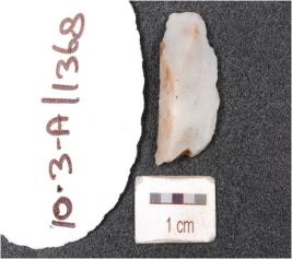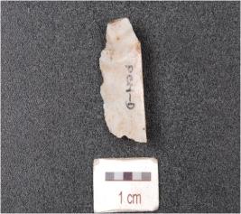 | Description / विवरण | Chert flake made on end struck flake scars, triangular cross-section amd use wear marks along the cutting edge. |
