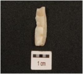 | Description / विवरण | A blade made of chert, uneven surface and irregular in shape, ridge on dorsal side and diffused bulb on ventral side. |
