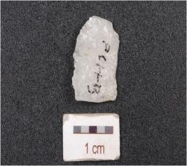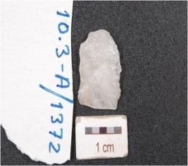 | Description / विवरण | A quartz blade, triangular cross-section, half broken, prepared platform, prominent bulb on ventral side and use marks along the cutting edges. |