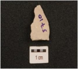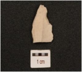 | Description / विवरण | A flake made of chert, ridge on dorsal diffused bulb on ventral side and use wear marks on edges. |