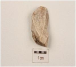 | Description / विवरण | A flake made of chert, uneven surface and flake scard. |