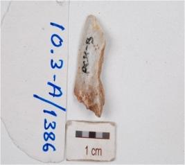 | Description / विवरण | A chert end struck flake with cortex partly intact on dorsal side. |