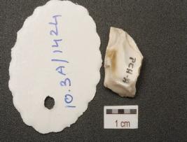 | Description / विवरण | Chalcedony core, blade scars on one surface and irregular shape. |