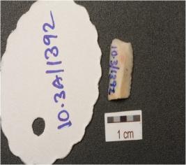 | Description / विवरण | Blade with a triangular cross section, broken at both ends and middle ridge visible. |