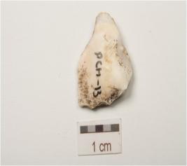 | Description / विवरण | A chalcedony flake with a striking platform on one end and positive bulb on ventral side. |