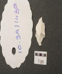 | Description / विवरण | Chalcedony flake, irregular shape and a ridge on one surface. |