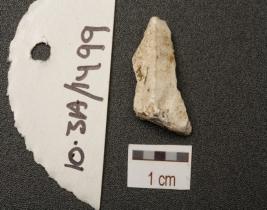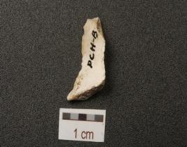 | Description / विवरण | Chert blade with a ridge on dorsal, diffused bulb on ventral and wear-marks along cutting edge. |